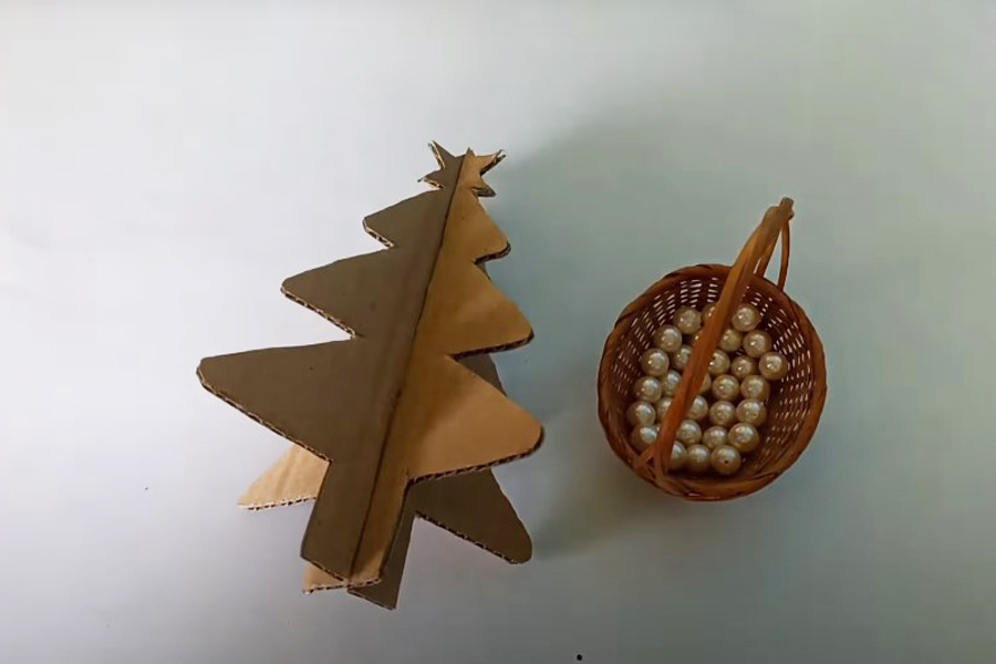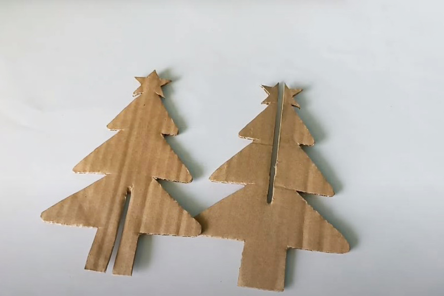 Bước 1: Dùng hai tờ bìa carton làm cây thông Noel như Hướng dẫn làm cây thông Noel bằng bìa cứng mà bTaskee đã hướng dẫn ở trên.