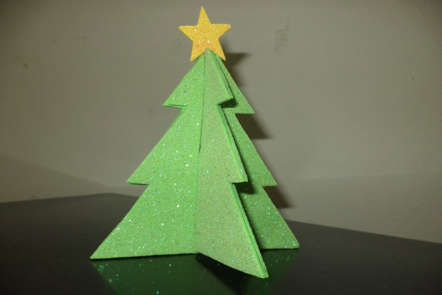 Thành phẩm sẽ là một cây thông nhỏ xinh để bàn. Bạn có thể cắt thêm bông tuyết hoặc sợi kim tuyến gắn lên cho thêm phần bắt mắt.