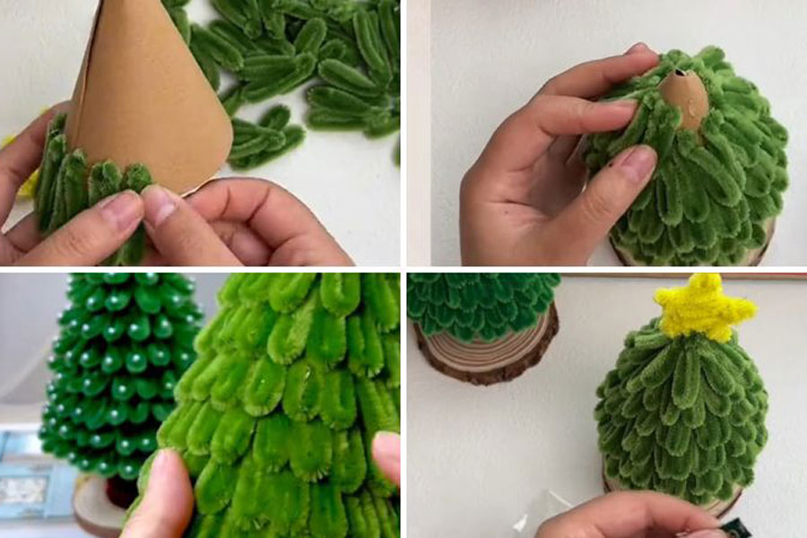 Hướng dẫn cách làm cây thông Noel đơn giản với kẽm nhung: