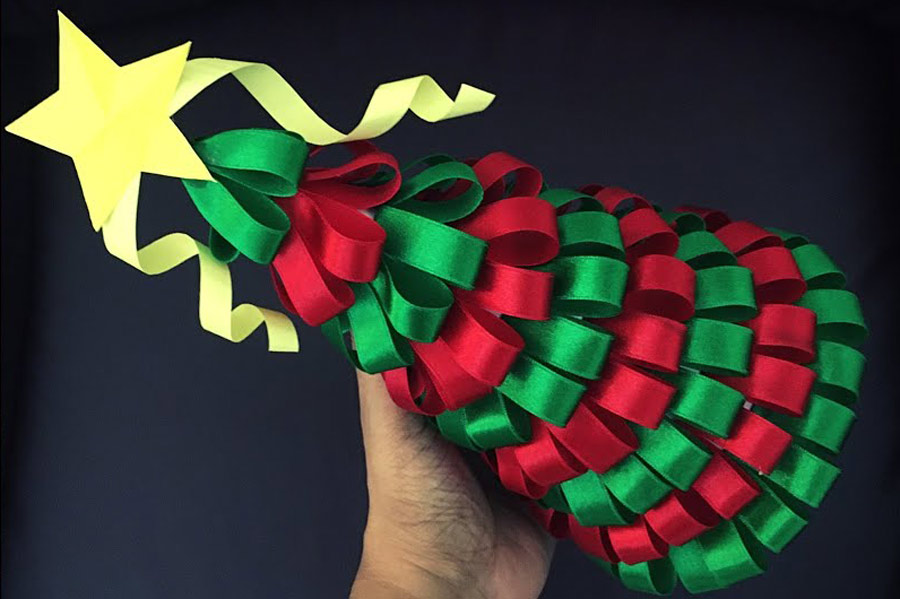 Bước 4: Gắn nơ lên đỉnh cây thông nữa là xong.