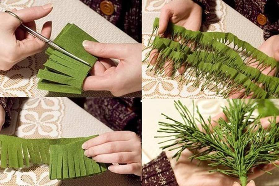 Bước 3: Dùng tay nhẹ nhàng xoắn những phần sợi tua vừa cắt lại thành sợi nhỏ như lá của nhánh thông.