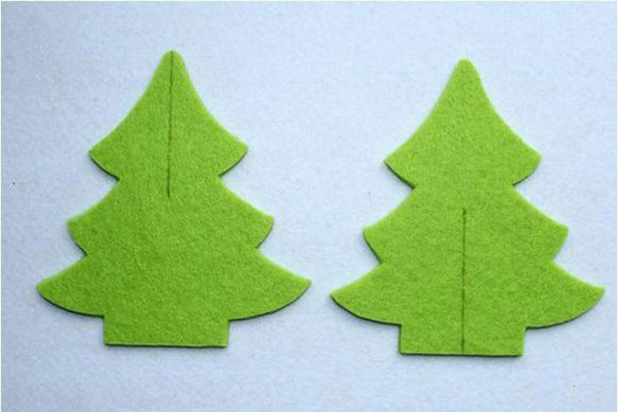 Bước 1: Vẽ hình cây thông lên vải rồi cắt ra thành từng miếng. Mỗi cây thông sẽ cần 2 miếng như vậy.