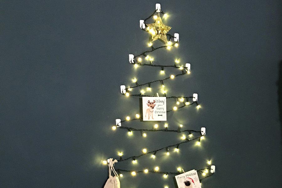 Cây thông Noel tự làm này thích hợp với không gian nhỏ xinh và ấm cúng. Qua dịp Giáng Sinh rồi bạn còn có thể tha hồ biến tấu dây đèn LED thành những hình khác theo sở thích.
