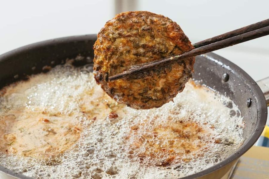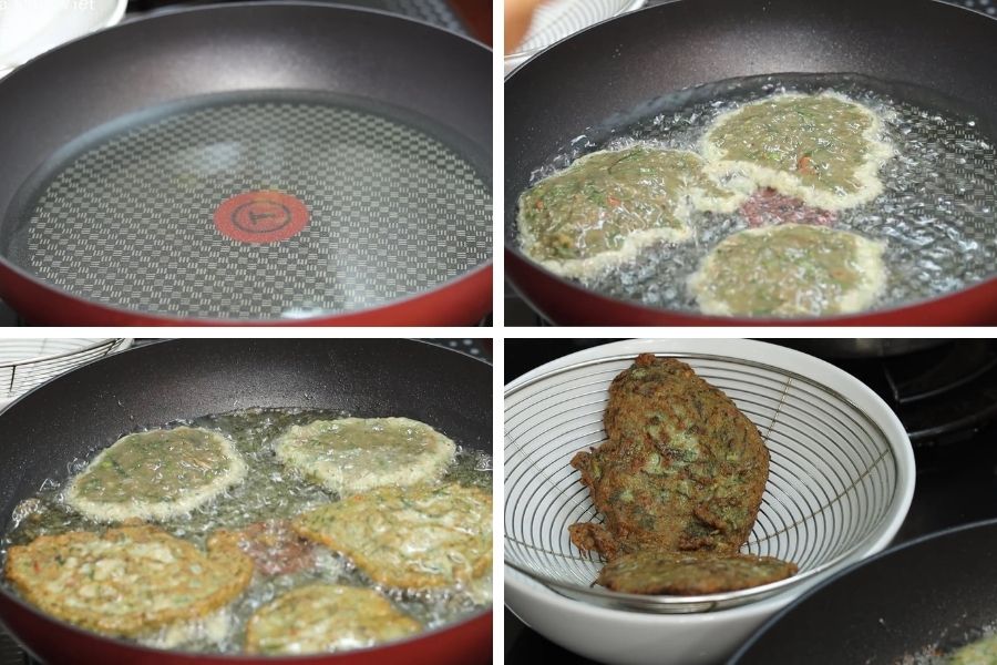 - Trong quá trình chiên rán, hãy chú ý về thời gian và để nhiệt độ bếp lửa vừa. Điều này sẽ làm miếng chả rươi bên ngoài có màu vàng nâu đẹp mắt nhưng bên trong vẫn giữ được độ ẩm mềm.