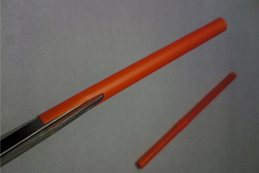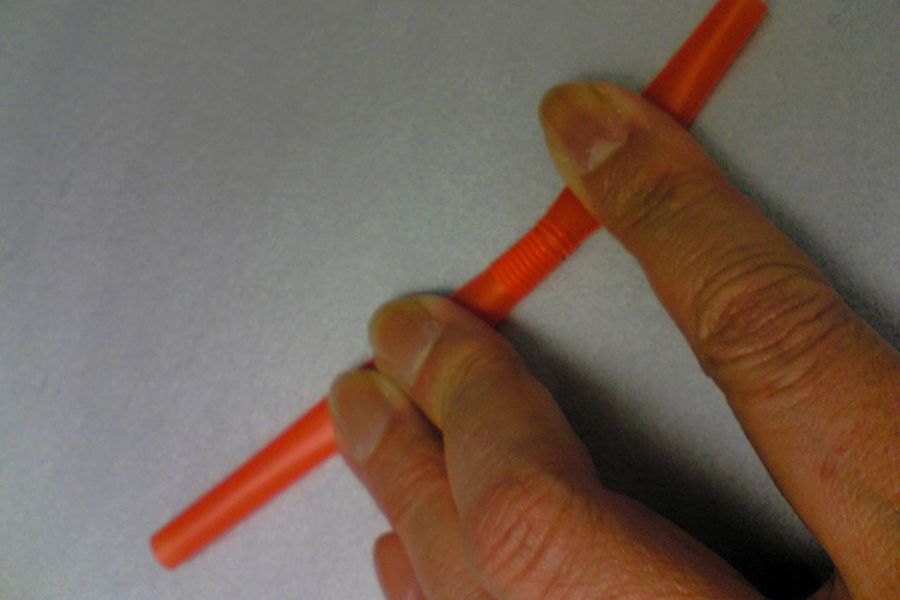 Bạn cần cắt một đoạn ống hút ngắn. sau đó cắt theo chiều dọc của ống hút và bạn cần giữ cho vết cắt càng thẳng càng tốt.