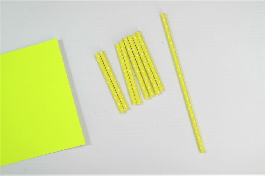 Bước 1: Dùng kéo cắt ống hút giấy thành các đoạn ngắn hơn( cắt một nửa ống) và các bạn để lại một ống hút dài nhé.