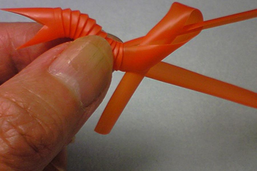 Lấy phần ống hút được cắt uốn cong và quấn nó xung quanh xương sống