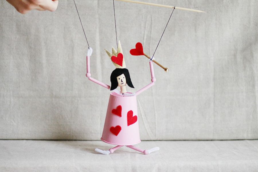 Làm con rối Nữ hoàng Trái tim bằng ống hút và cốc giấy