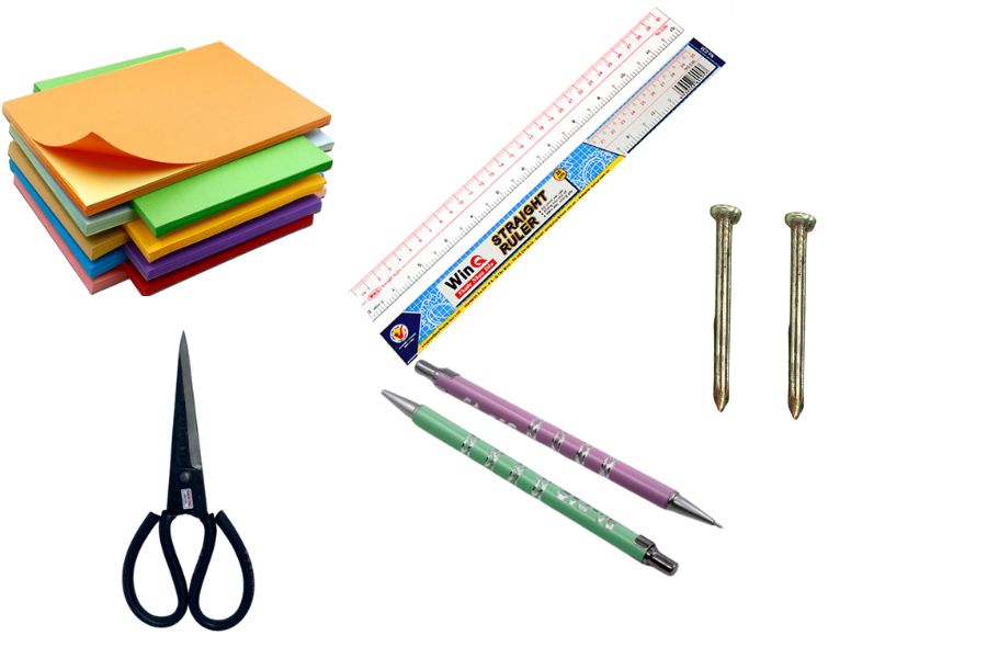 - 1 cây compa để đánh dấu và kẻ đường, 1 cây kéo để cắt giấy.