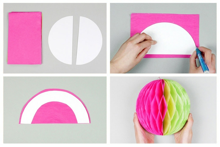 - Bước 4: Dán các hình quạt đã dán lại với nhau theo hình tròn, tạo thành một quả cầu.