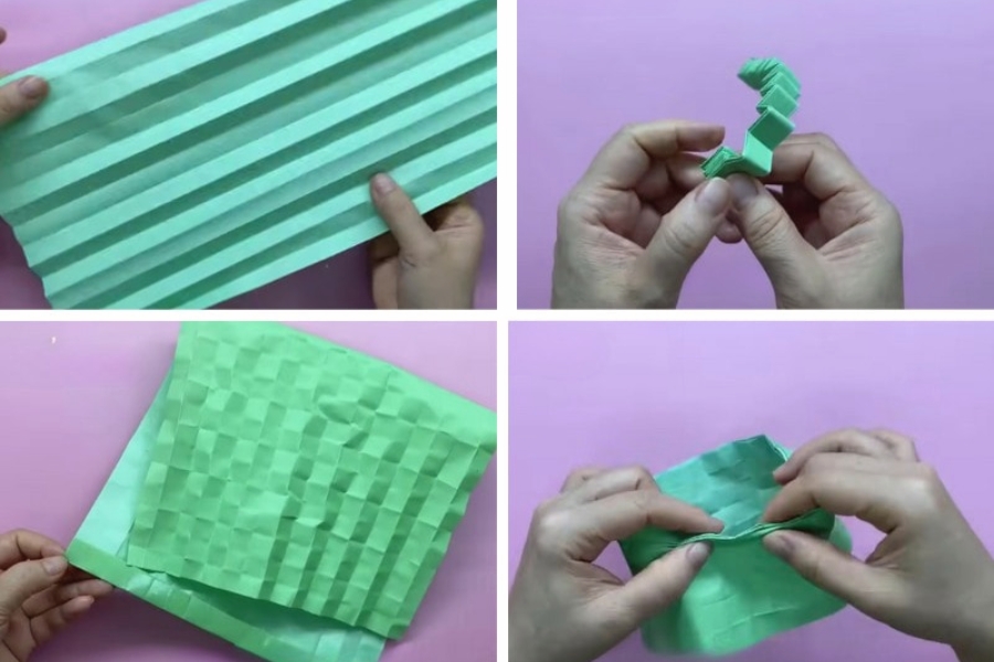 - Bước 2: Gấp giấy theo chiều dài thành nhiều nếp gấp đều nhau, giống như gấp quạt giấy.
