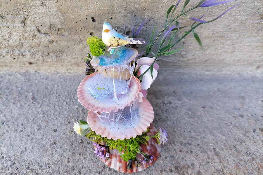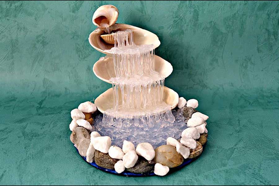 Làm đồ handmade từ vỏ ngao thành thác nước sẽ đòi hỏi bạn phải thật khéo tay. Thành phẩm có thể sử dụng để trang trí bể cá hoặc đặt trong sân vườn, hòn Non Bộ…