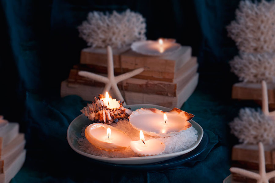 Với những vỏ ngao lớn, bạn chỉ cần đặt trực tiếp nên lên trên là đã có một chân đế xinh xắn rồi. Ngoài ra, bạn có thể tham khảo cách làm đồ trang trí bằng vỏ ngao phức tạp hơn một chút bằng cách tạo chân nến hình hoa.