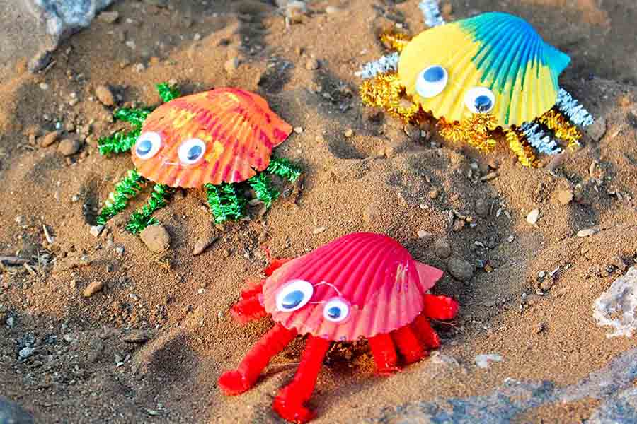 Phần vỏ ngao sẽ làm thân, bé chỉ cần vẽ thêm đầu, chân, đuôi là sẽ biến chúng thành những con vật đáng yêu để trang trí góc thư viện mầm non, trang trí cửa sổ, gắn lên tường…