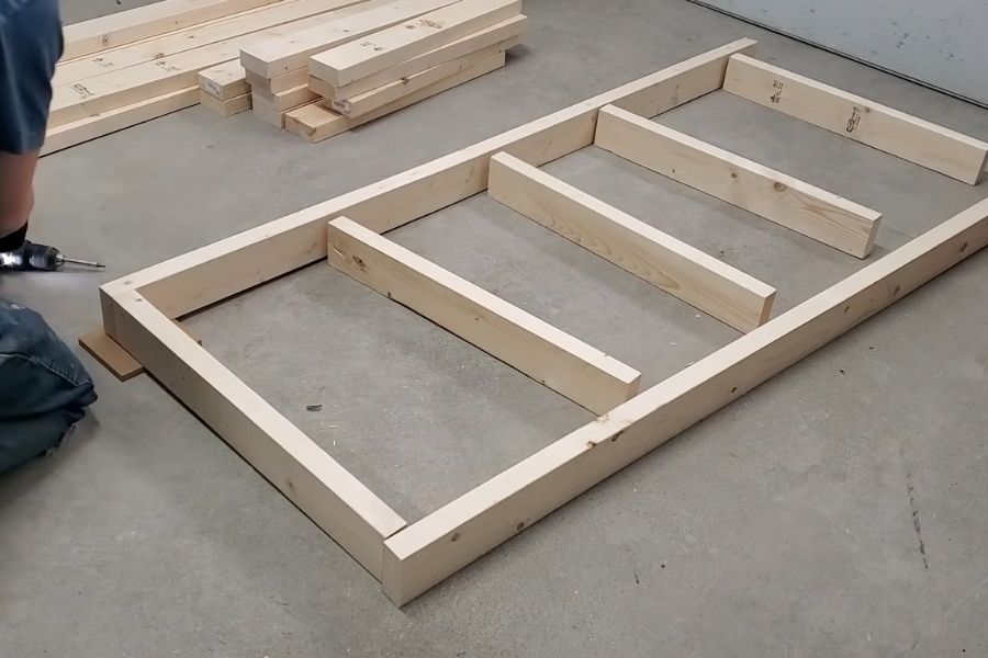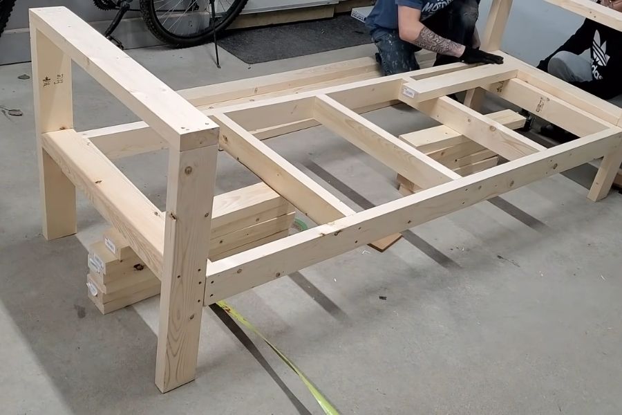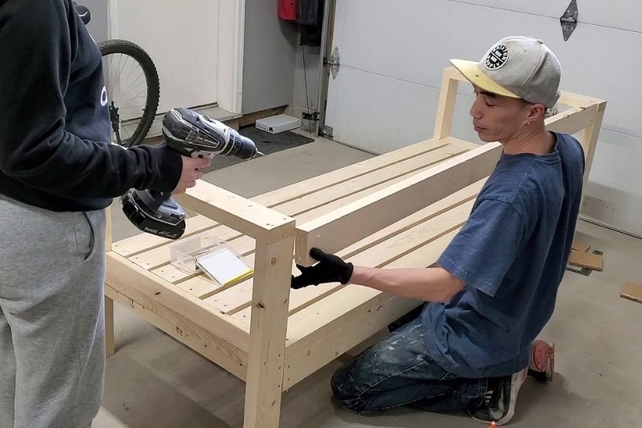 - Lắp 2 khung chân ghế và phần khung ghế ngồi để tạo thành bộ khung ghế sofa cơ bản.