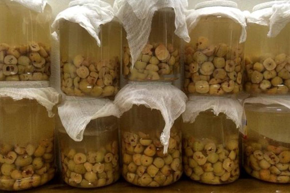 - Bước 3: Đem lọ giấm đặt vào nơi khô ráo và thoáng mát để bảo quản. Ngâm giấm trong khoảng 3 – 4 tuần là có thể sử dụng. Nếu trong khi ủ giấm mà có váng trắng nổi lên thì chỉ cần hớt bỏ lớp váng trắng đó bỏ đi là được.