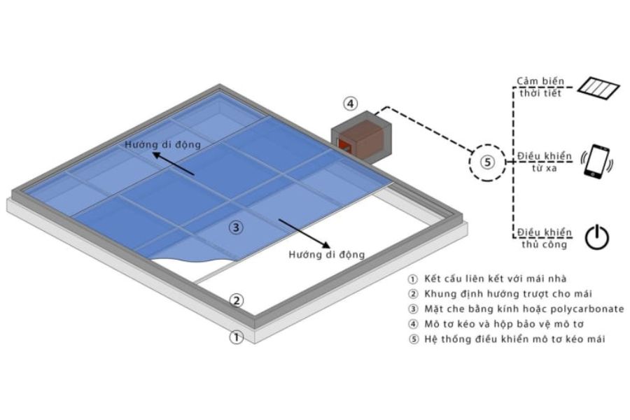 – Mái che di động: Chi phí cao, chất lượng kém và độ bền thấp nhưng lại thuận tiện khi có thể đóng mở tự động.