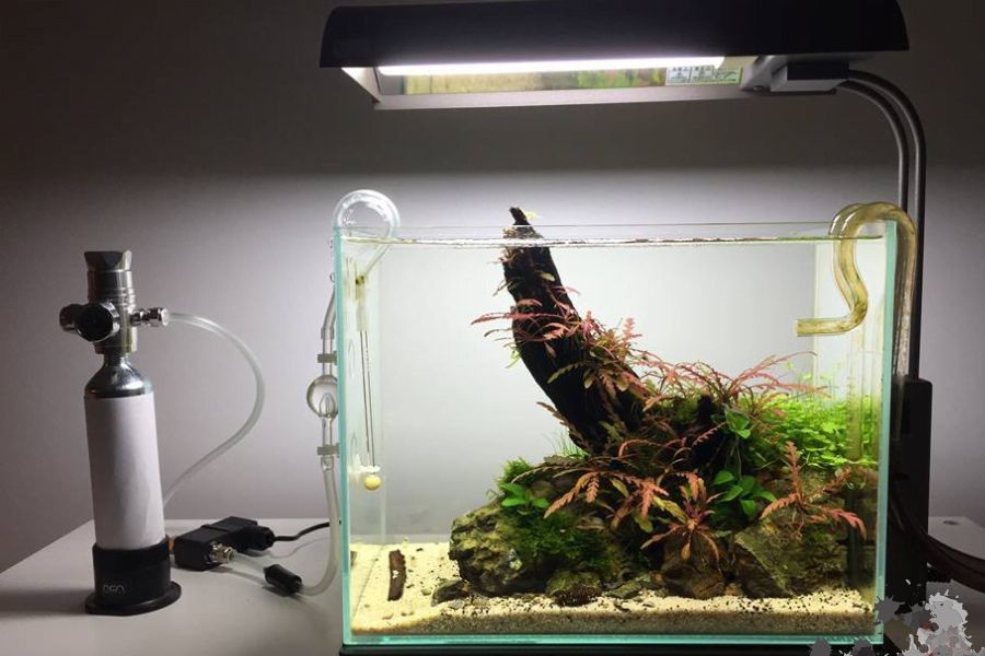 Sau khi đã hoàn thành bước đặt cố định các yếu tố trang trí vào trong bể thủy sinh, bạn cần đặt hệ thống lọc và hệ thống bơm khí CO2 và oxy.