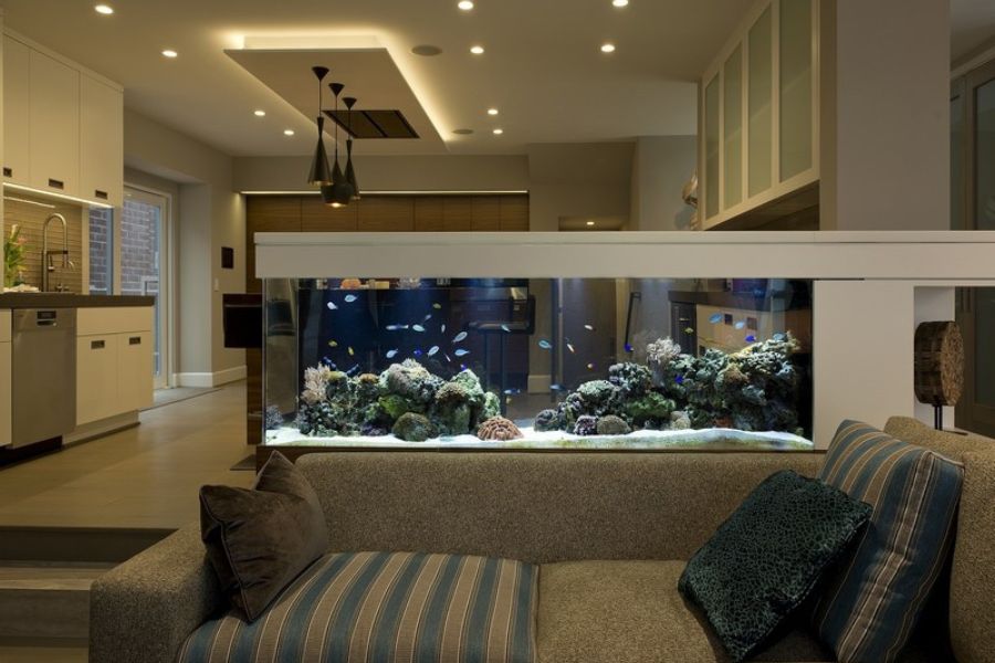 - Vị trí đặt hồ: Không chỉ giúp tăng tính thẩm mỹ, nhiều gia chủ còn nghiên cứu rất kỹ vị trí đặt hồ để đạt được yếu tố phong thủy tốt nhất. Vị trí phòng đặt cần đảm bảo ánh sáng tốt và thuận tiện cho quá trình chăm sóc hồ.