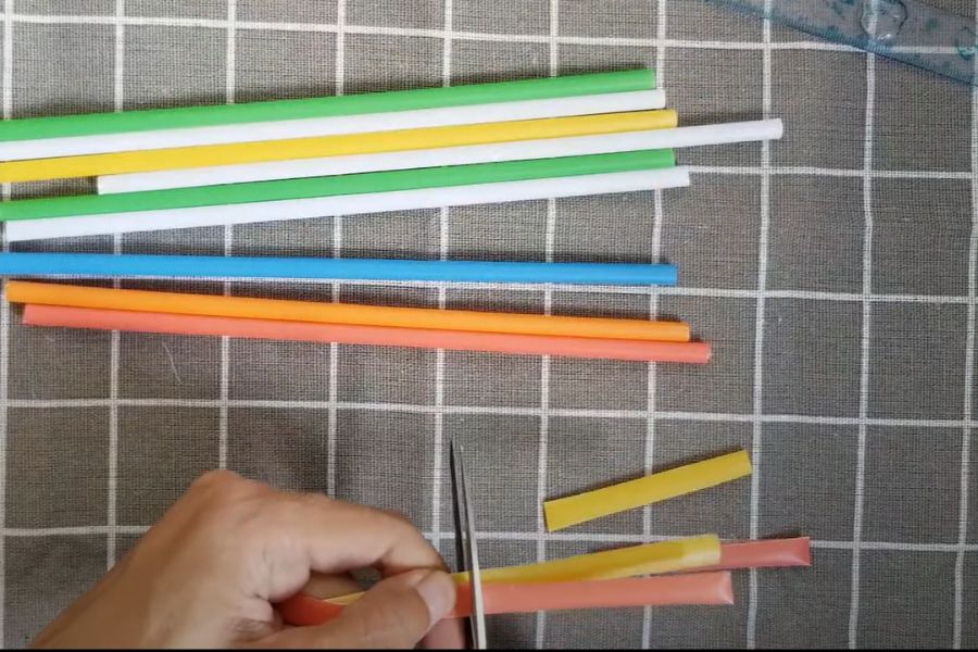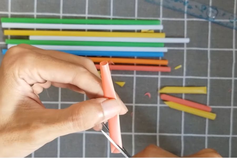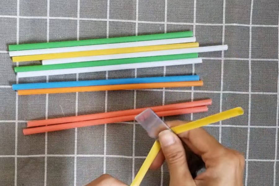 Bước 2: Cắt ống hút thành các đoạn nhỏ khoảng 7cm.