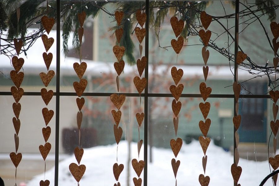 Tạo hình là khâu rất quan trọng trong cách làm màn cửa bằng giấy vì nó quyết định tính thẩm mỹ của rèm. Bạn dùng keo hoặc ghim bấm để dáng miếng giấy hình trái tim hay hình dạng khác mà bạn vừa cắt.