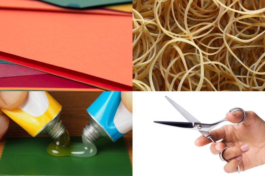 - Keo dán, băng dính 2 mặt, kẹp giấy.
