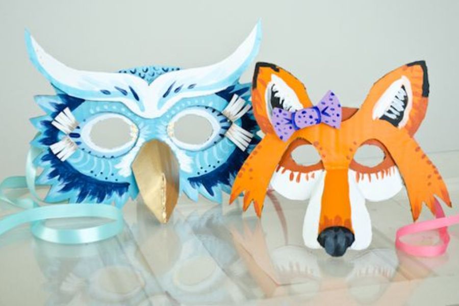 Lưu ý: Với những mẫu mặt nạ không có chóp đầu để đội, bạn có thể sử dụng dây ruy băng, dây chun để giữ cố định mặt nạ.