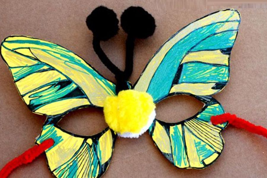 - Bước 4: Cuối cùng bạn gắn cho chiếc mặt nạ các họa tiết trang trí xinh xắn theo sở thích bằng giấy màu và bút màu nhé.