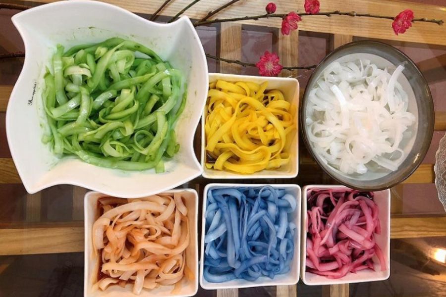 – Màu Đỏ: Gấc chín, có thể thay thế bằng củ dền.
