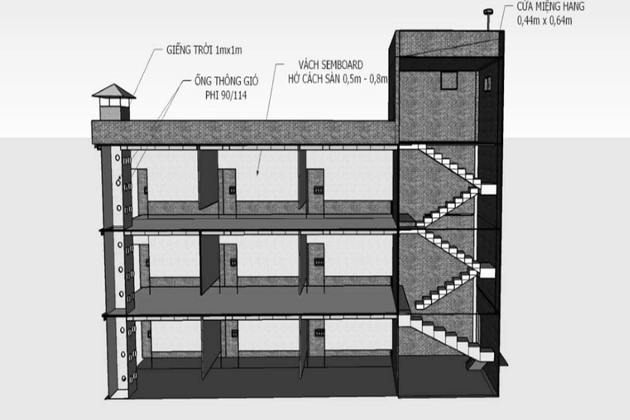- Trực tiếp: Đặt ống nhựa giữa khe hở tường 2 lớp, gió và ánh sáng trực tiếp vào trong