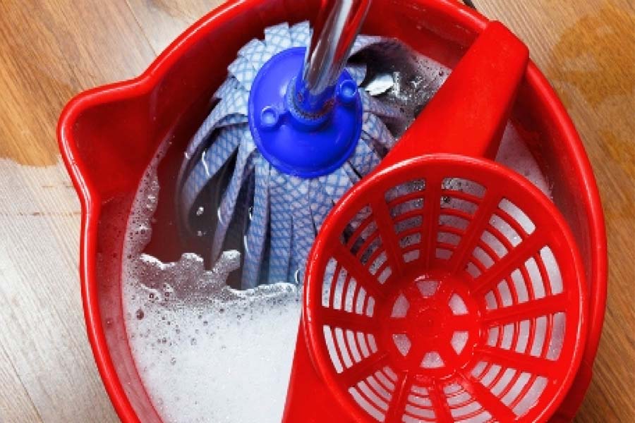 Với cách làm này, bạn cần làm sạch trước cây lau nhà với nước sạch để lấy đi một phần chất bẩn. Sau đó, bạn hãy trộn nước tẩy và nước rửa bát cùng với nước. Ngâm cây lau nhà trong dung dịch và để qua đêm.