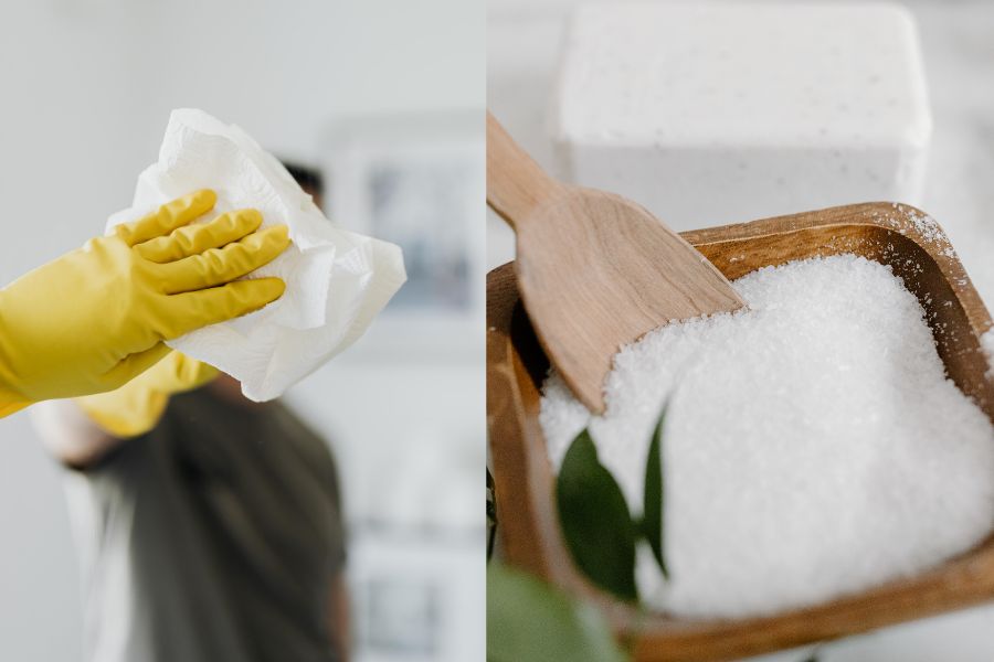 Lưu ý: Bạn nên dùng lực lau nhẹ nhàng cũng như lựa chọn loại muối hạt nhỏ, mịn để tránh gây trầy xước gương nhé.