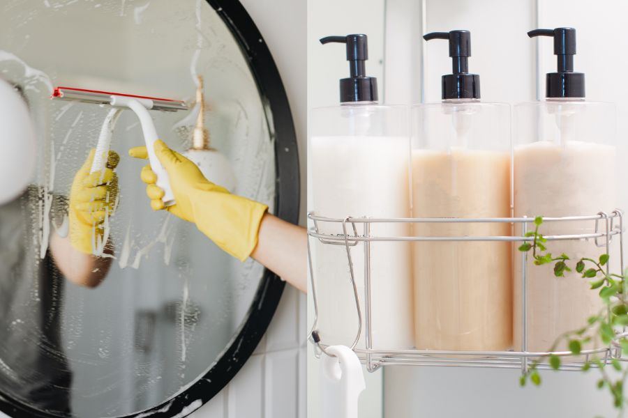Đặt dịch vụ giúp việc nhà theo giờ bTaskee giúp bạn làm sạch gương nhà tắm một cách nhanh chóng nhé.