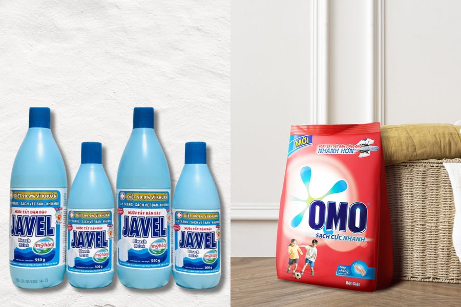 Kết hợp bột giặt và nước javel