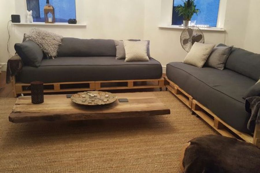 Chọn các miếng gỗ pallet sao cho phù hợp với một bộ sofa có kích thước từ 2m đến 3m tương ứng với không gian trong căn nhà của bạn ở.