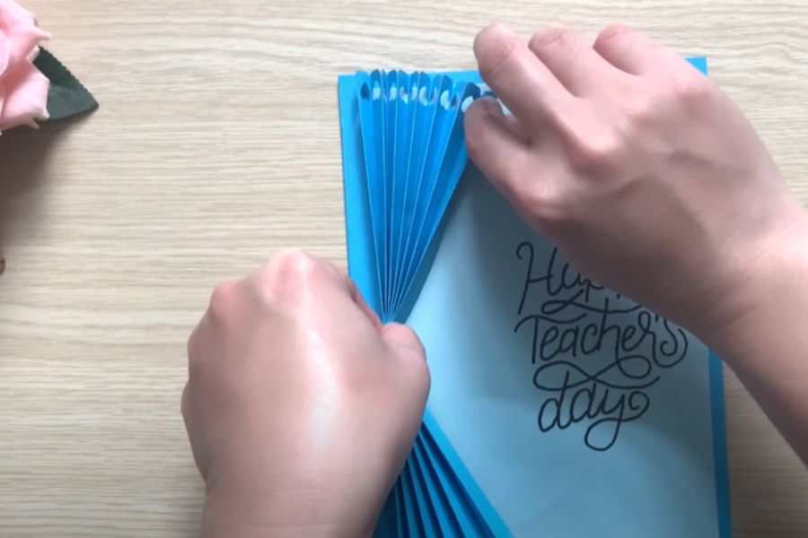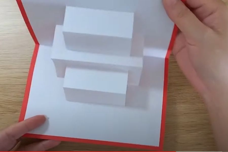 Bước 6: Khi cố định chặt mở tấm thiệp ra sẽ có hình khối như hình dưới đây.