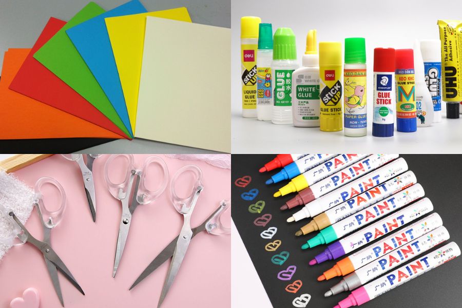 - Giấy bìa cứng màu xanh lá hoặc đỏ