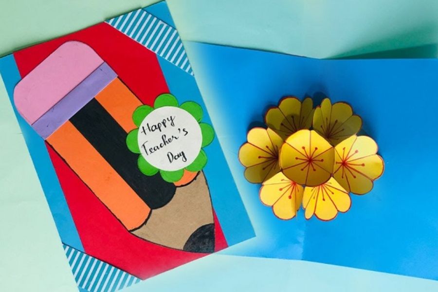 Hiệu ứng pop-up 3D tạo cảm giác bất ngờ thú vị khi thầy cô mở thiệp. Những chi tiết nổi lên từ tấm bìa phẳng không chỉ đẹp mắt mà còn khiến món quà trở nên đặc biệt hơn. Theo nhiều nghiên cứu về tâm lý, quà handmade thường được trân trọng và lưu giữ lâu hơn vì giá trị cảm xúc đi kèm.