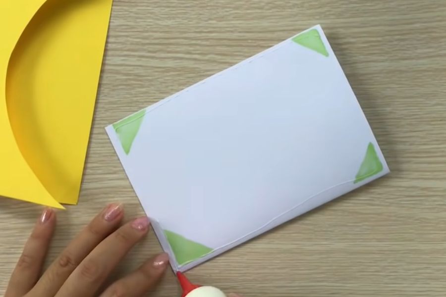 Bước 4: Dùng keo dán để cố định bìa trắng vào bên trong tấm thiệp vàng.