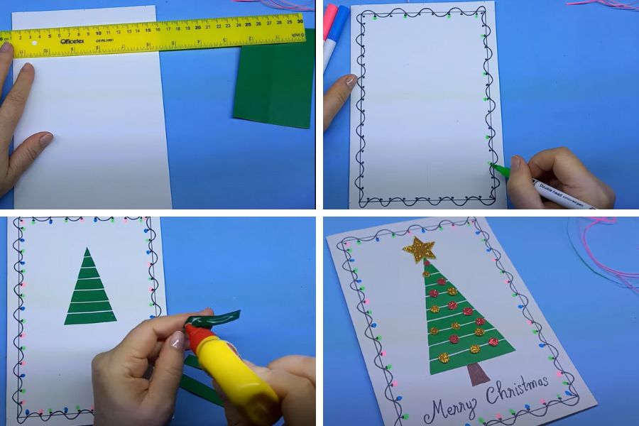 Cách làm thiệp Giáng sinh bằng giấy A4 hình cây thông Noel