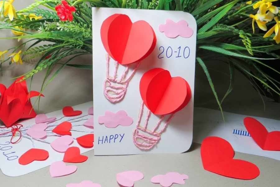 - Bước 5: Viết lời chúc và dán các hình trái tim màu sắc xung quanh bên ngoài tấm thiệp là đã hoàn tất.