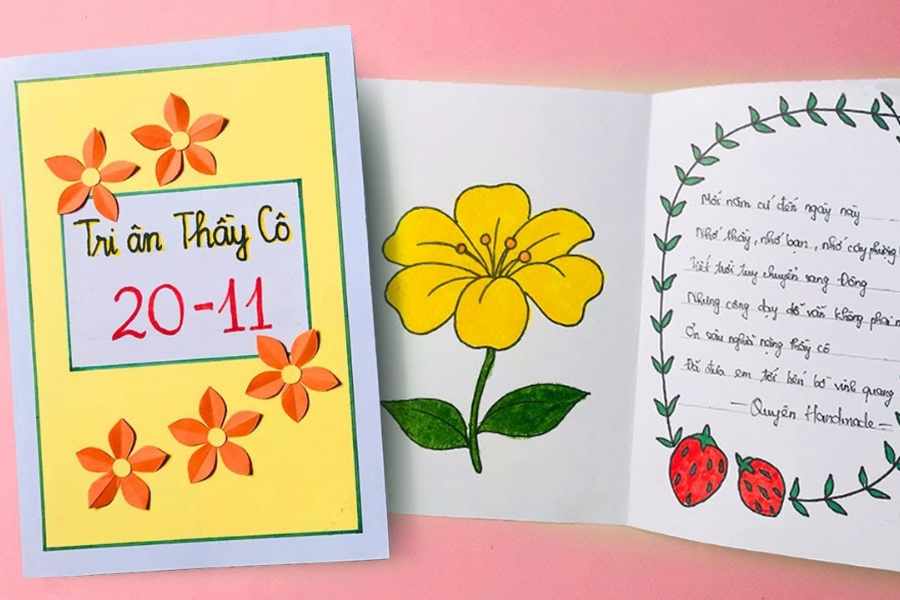 Hướng dẫn cách làm thiệp 20/11 bằng giấy A4 dành tặng thầy cô theo kiểu 3D
