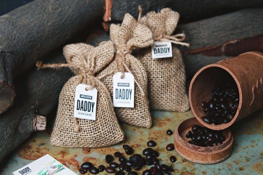Đổ cà phê vào khoảng 2/3 túi. Rồi dùng dây buộc chặt miệng túi lại và đưa vào sử dụng.
