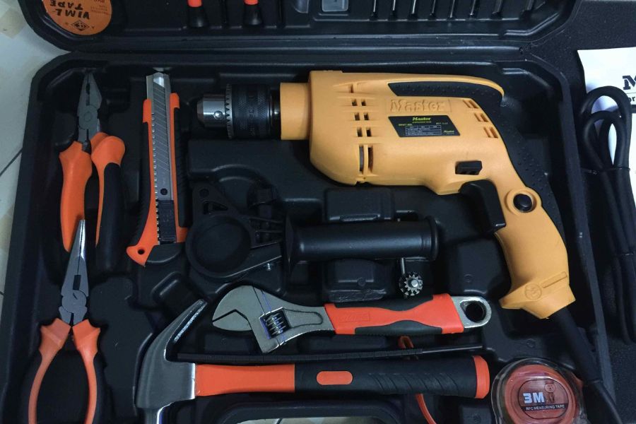 – Bước 1: Chuẩn bị đầy đủ dụng cụ gồm: giá đỡ, khoan, ốc vít, rèm cầu vồng, thước li, búa…