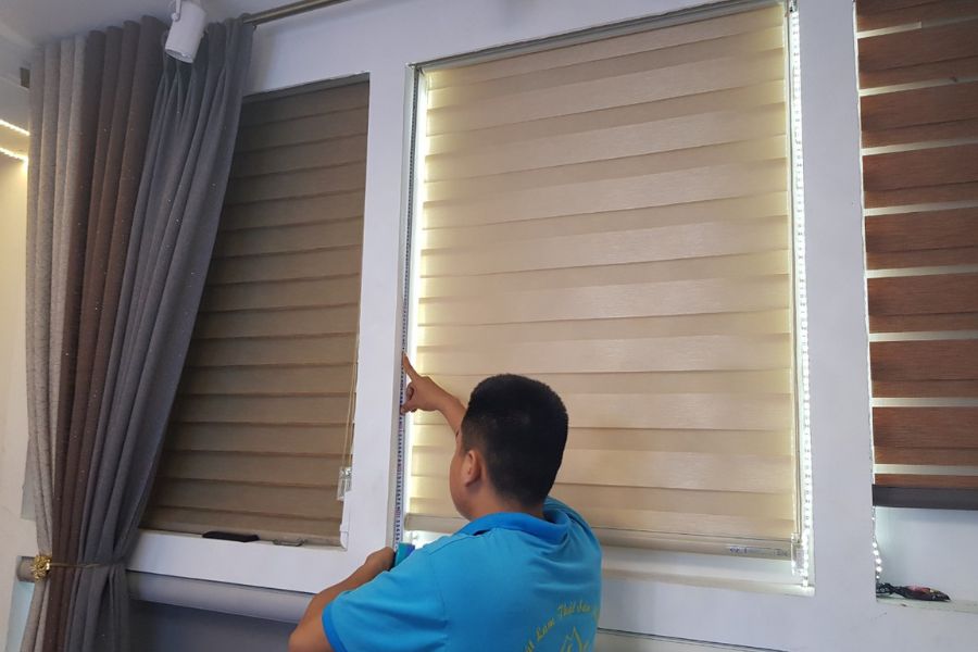 – Bước 4: Gắn rèm: Cuối cùng, bạn chỉ cần lắp vào hộp và kiểm tra xem màn hoạt động như thế nào. Sử dụng hệ thống dây kéo để kiểm tra mức độ cuộn lên xuống có trơn tru và đạt yêu cầu hay không. Vì đây là rèm cuốn nên phải đảm bảo có thể điều chỉnh việc cuốn – thả dễ dàng, nhanh gọn.