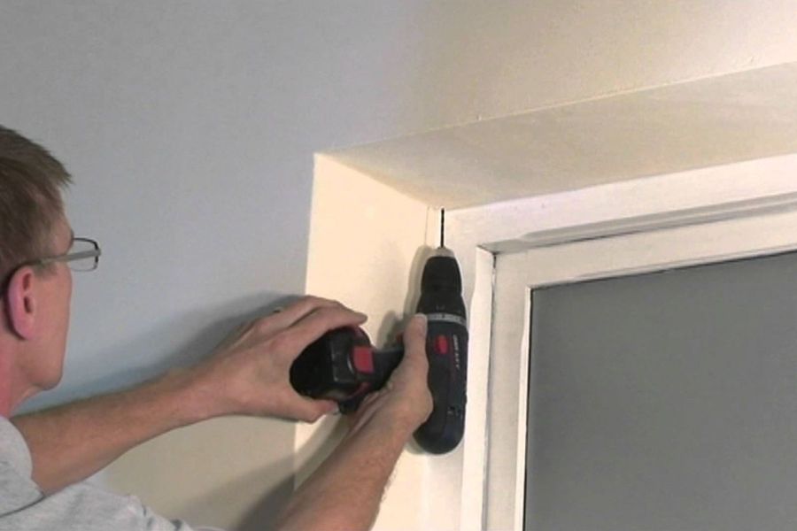 – Bước 2: Xác định vị trí: Hộp rèm được đặt phía trên mép cửa hoặc phía trong mép cửa, tùy theo thiết kế. Mép ngoài của hộp màn cách mép trong của hộp từ 5-6 cm. Khi xác định được vị trí nên đánh dấu lại bằng bút chì để không bị sai sót khi lắp đặt.