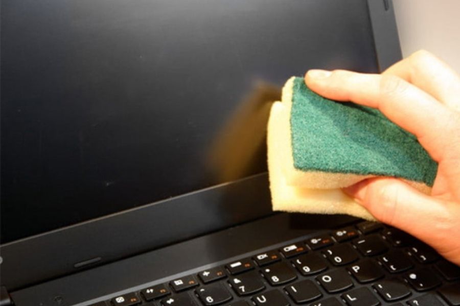 Cách lau màn hình laptop bằng bọt biển ẩm