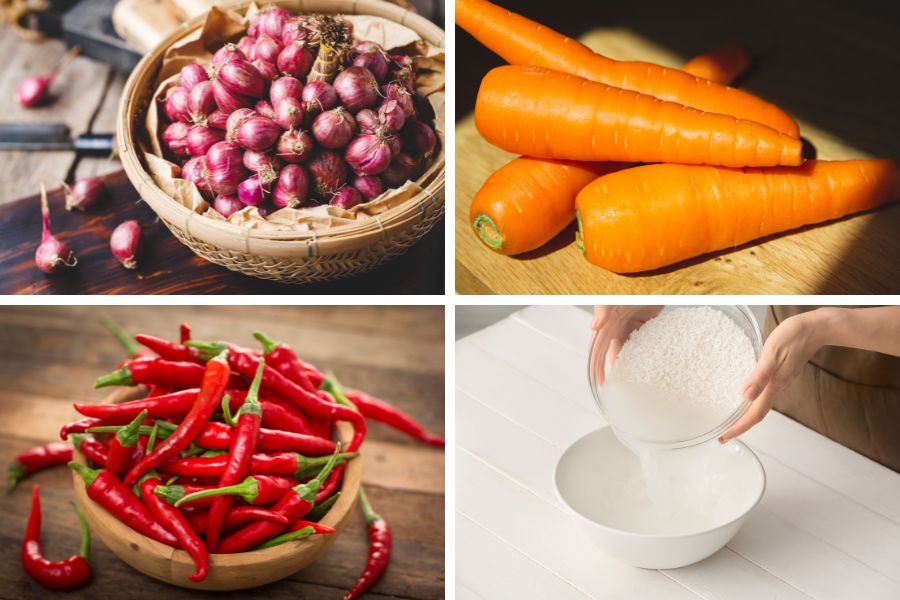 - Cà rốt, su hào (tùy theo sở thích hoặc vùng miền)