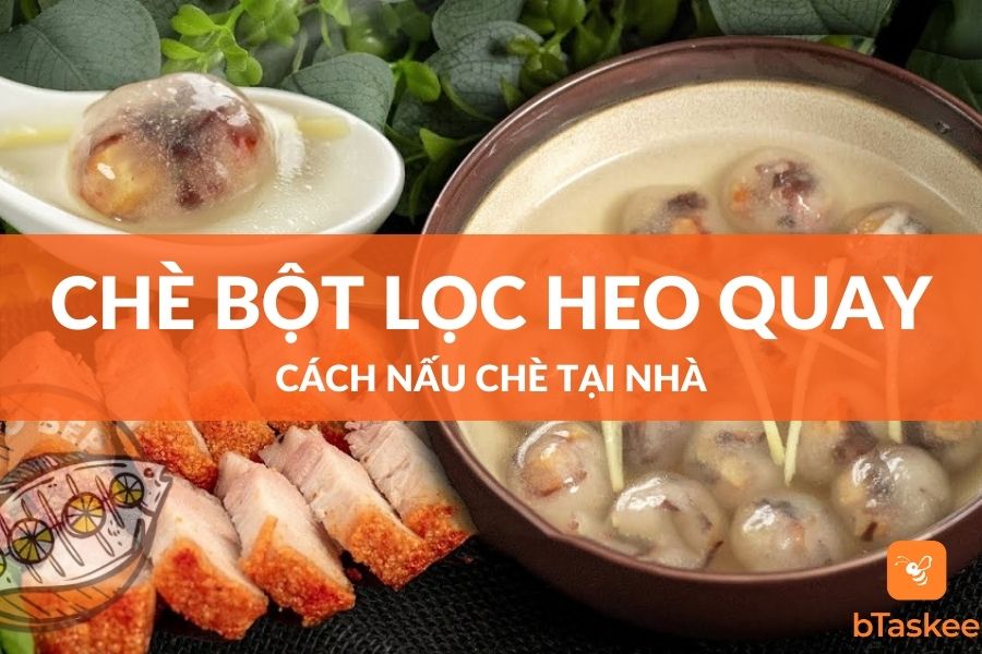 Chè bột lọc heo quay là món chè nổi tiếng của xứ Huế. Món ăn là sự kết hợp hoàn hảo độ dai giòn của heo quay và bột lọc. Kèm theo đó là nước đường ngọt thanh với thoang thoảng hương thơm của gừng khiến món chè trở nên độc đáo, mới mẻ. Hôm nay, bTaskee sẽ chia sẻ cho bạn cách nấu chè heo quay bột lọc đơn giản dễ làm tại nhà nhé!
