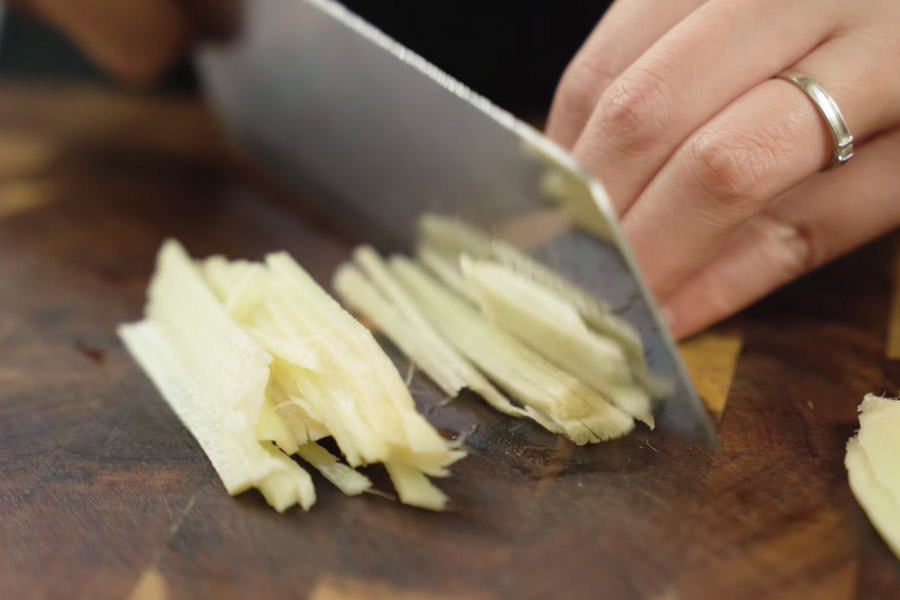 Cắt gừng thành sợi mỏng